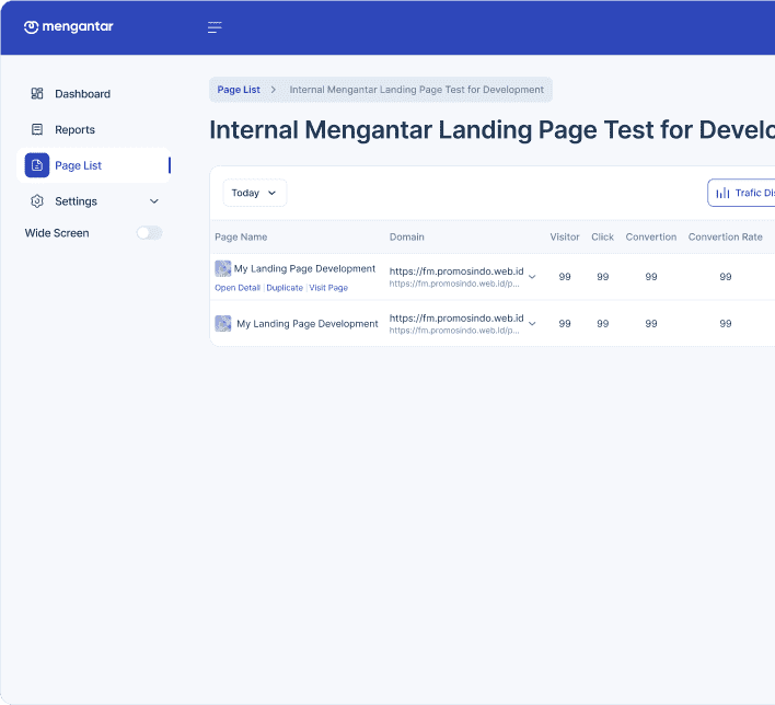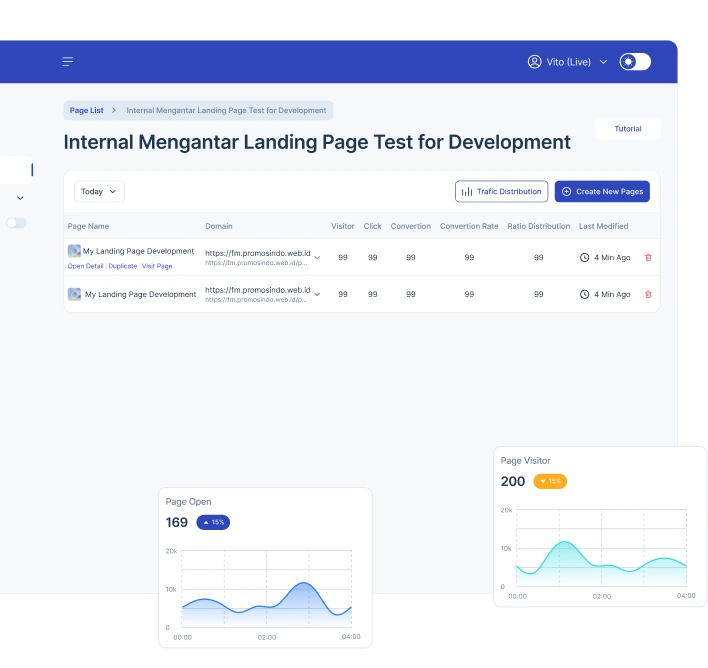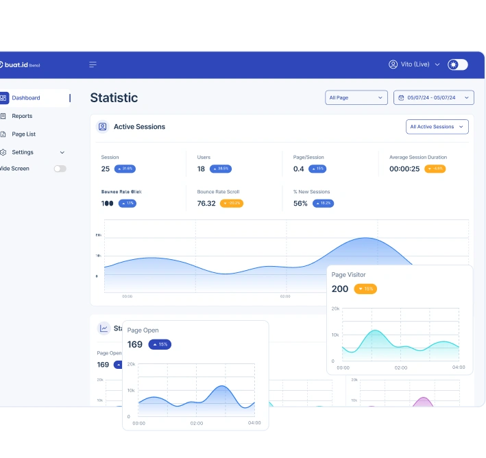 Dapatkan laporan statistik landing page-mu dengan lengkap, mudah tingkatkan pengalaman pengunjung.