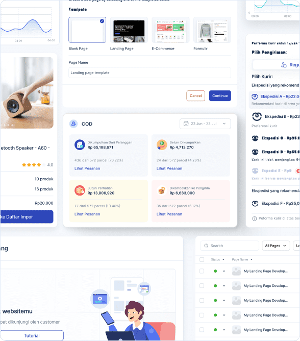 Masukkan komponen tambahan untuk memperkaya landing page-mu: cek ongkir, tautkan ke formulir pesanan, buat label di setiap page yang kamu kelola, dan lain sebagainya
